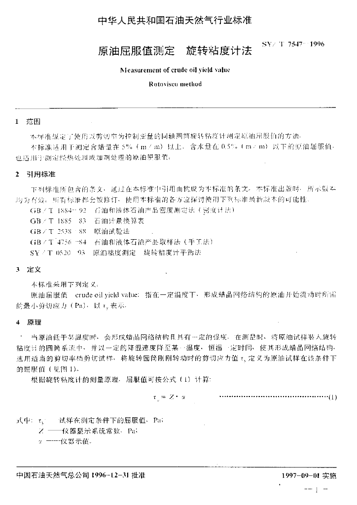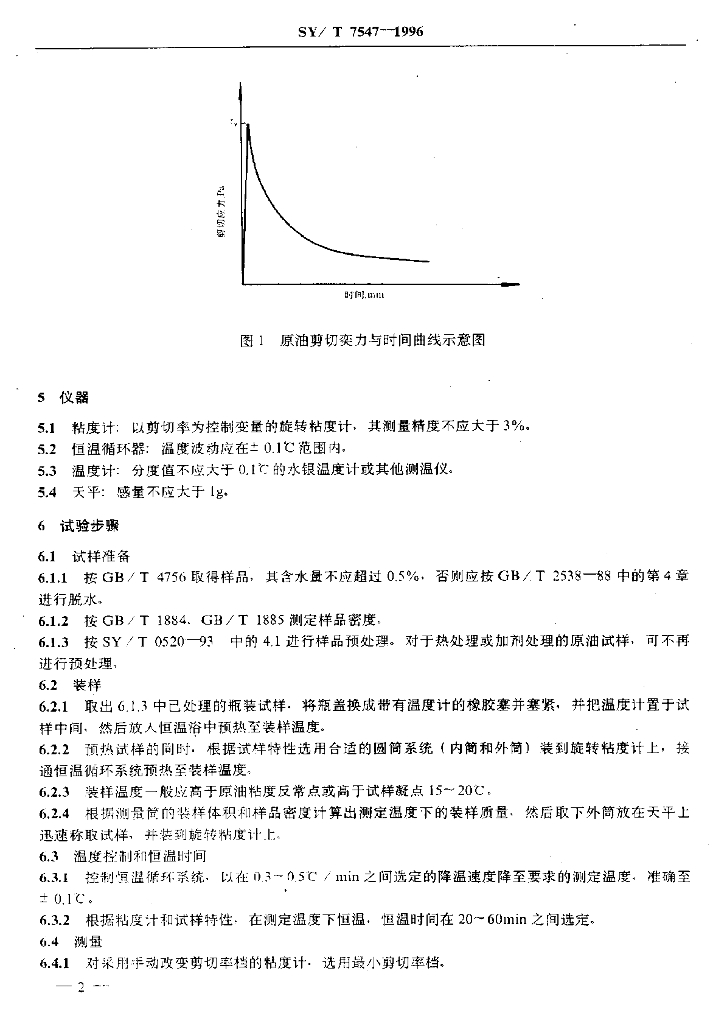 SY/T 7547-1996 原油屈服值测定 旋转粘度计法