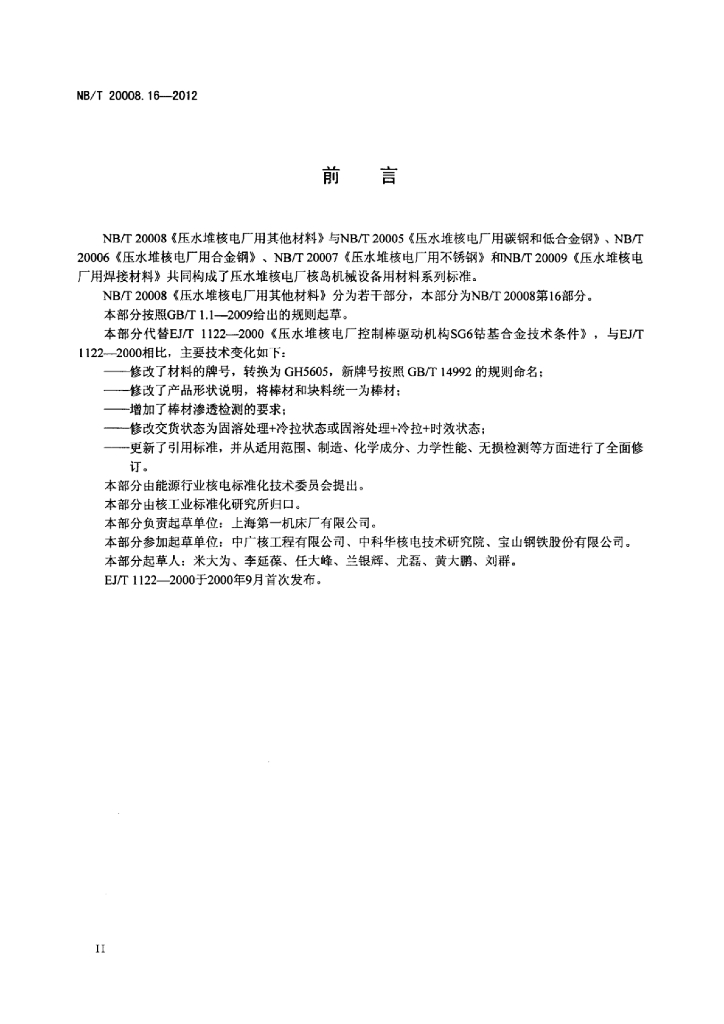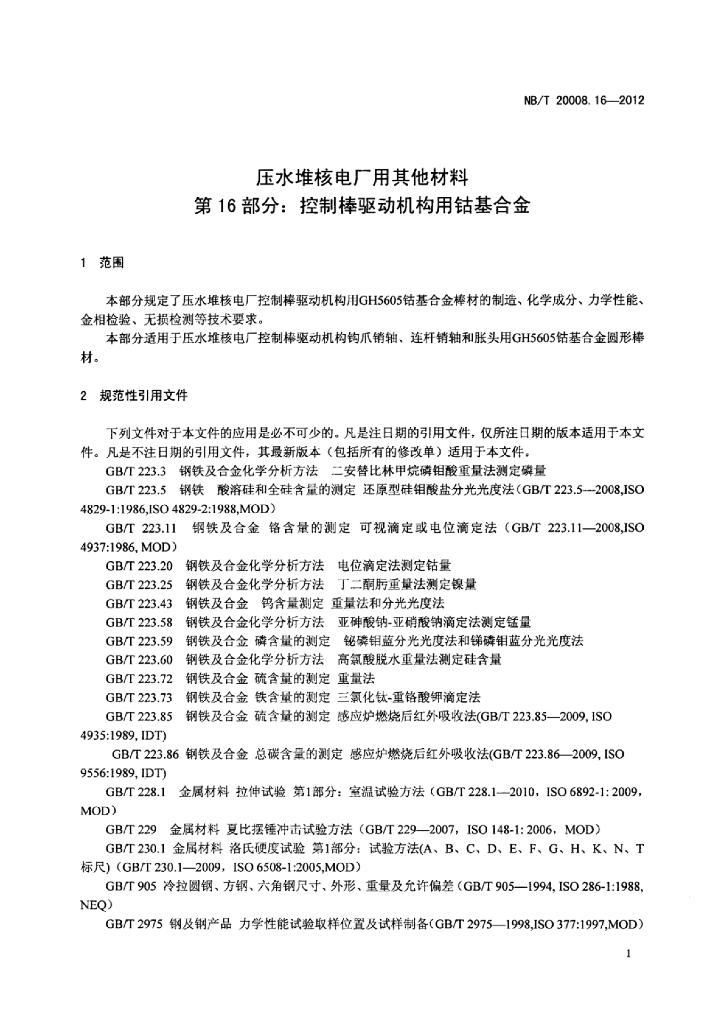 NB/T 20008.16-2012 压水堆核电厂用其他材料 第16部分:控制棒驱动机构用钴基合金