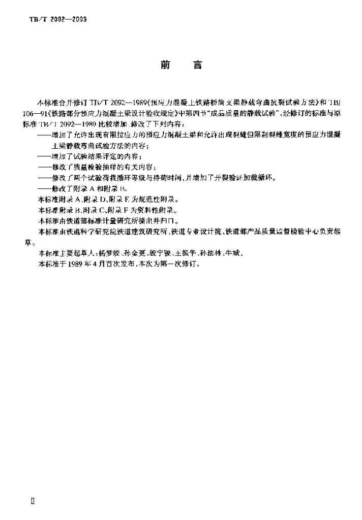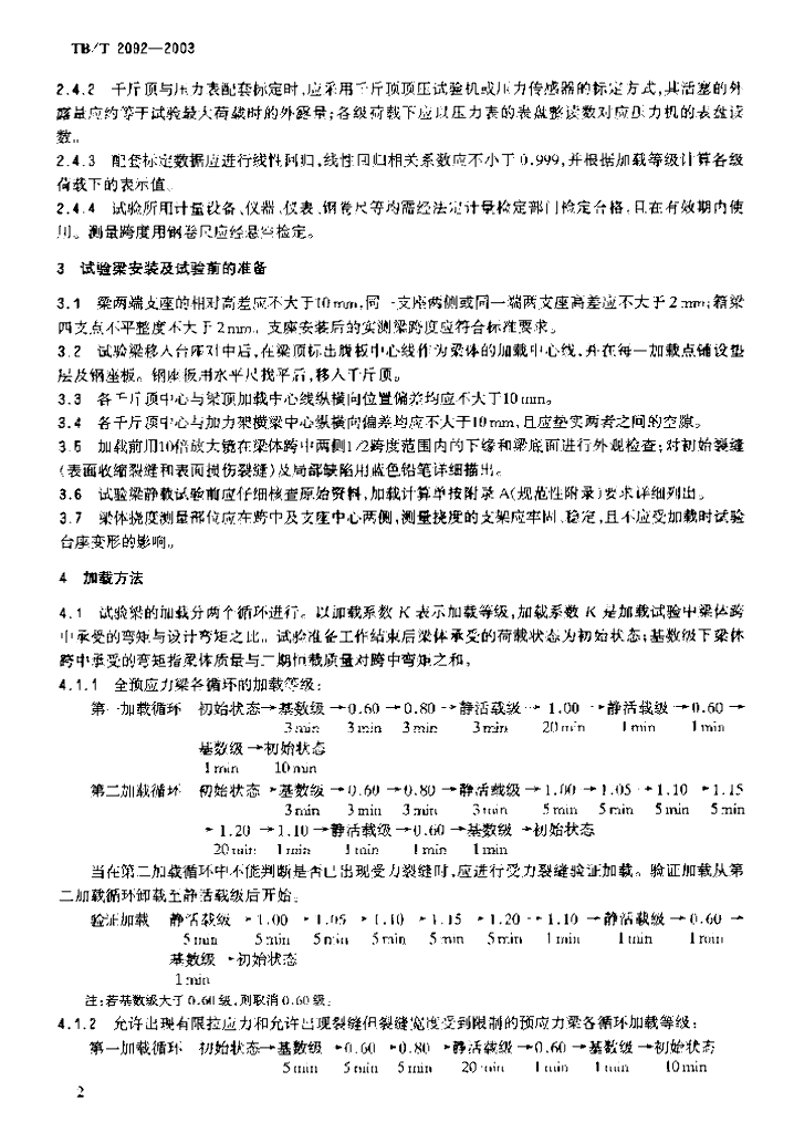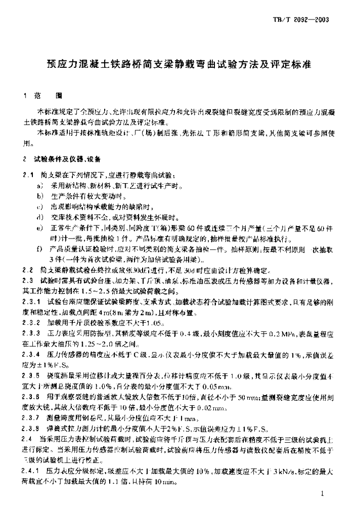 TB/T 2092-2003 预应力混凝土铁路桥简支梁静载弯曲试验方法及评定标准