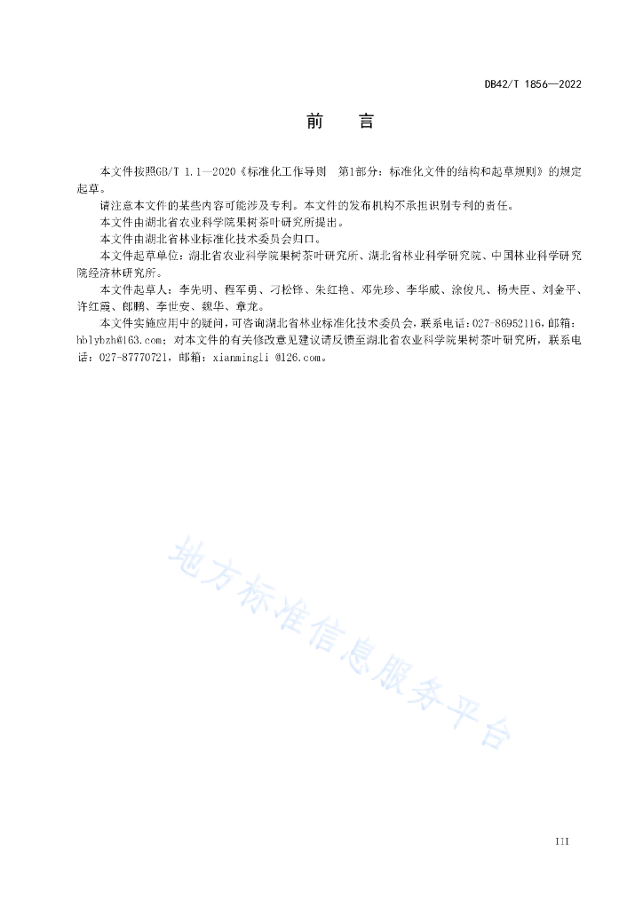 湖北省农业科学院果树茶叶研究所、湖北省林业科学研究院、中国林业科学研究院经济林研究所