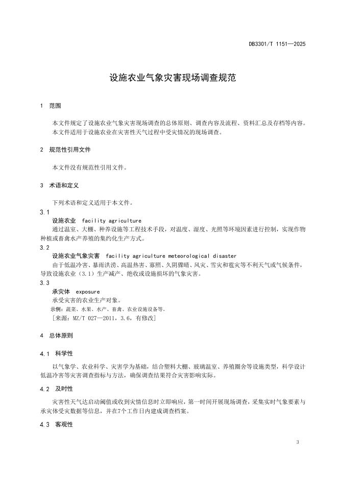DB3301/T 1151-2024 设施农业气象灾害现场调查规范