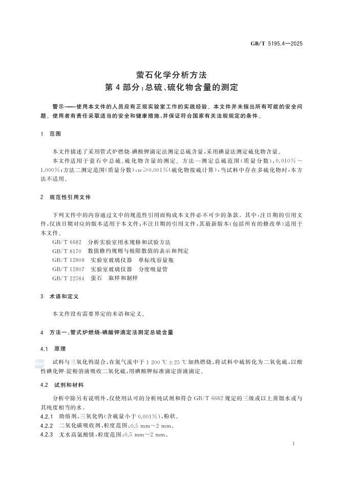 GB/T 5195.4-2025 萤石化学分析方法 第4部分:总硫、硫化物含量的测定