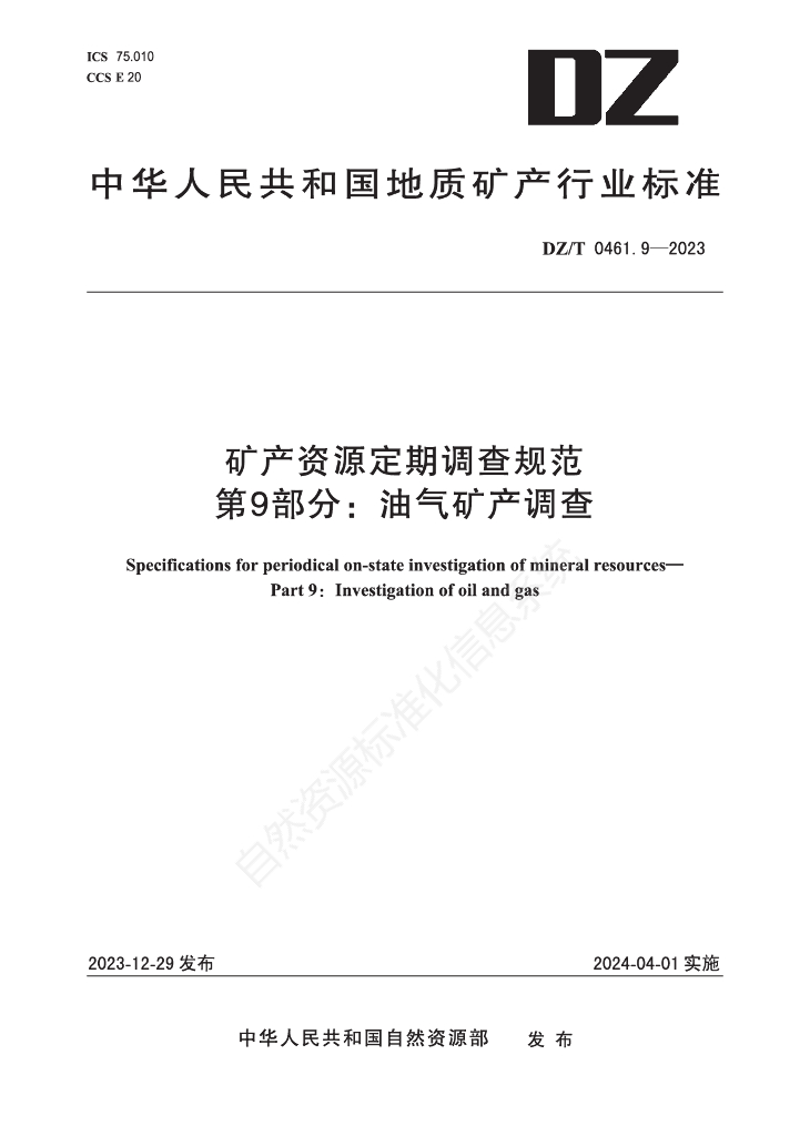 DZ/T 0461.9-2023 矿产资源定期调查规范 第9部分:油气矿产调查