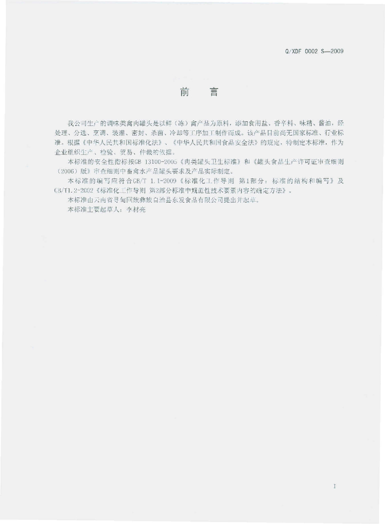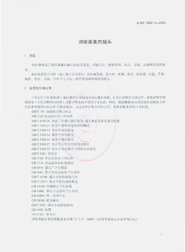 Q/XDF 0002S-2010 调味类禽肉罐头