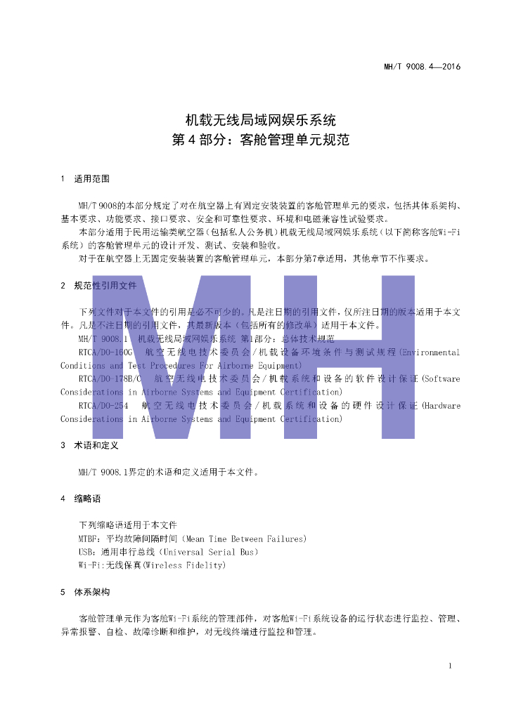 MH/T 9008.4-2016 机载无线局域网娱乐系统 第4部分:客舱管理单元规范