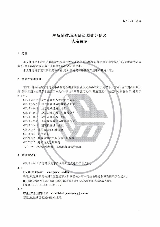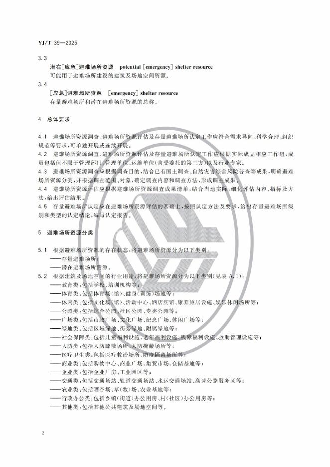 YJ/T 39-2025 应急避难场所资源调查评估及认定要求