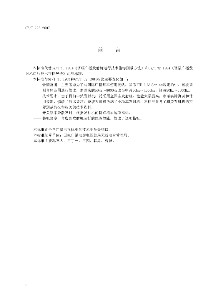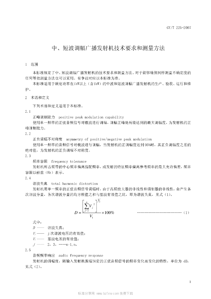 GY/T 225-2007 中、短波调幅广播发射机技术要求和测量方法