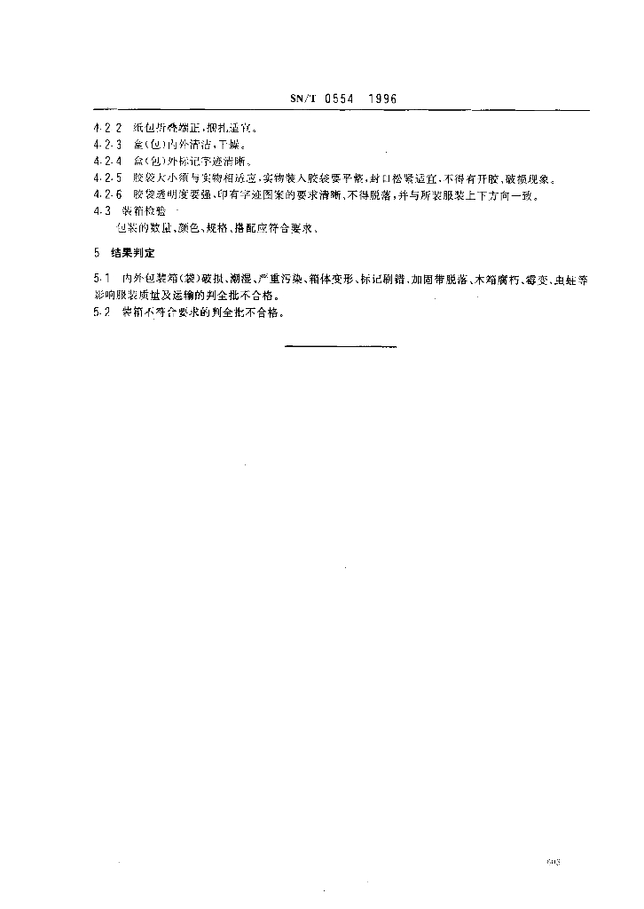 SN/T 0554-1996 出口服装包装检验规程