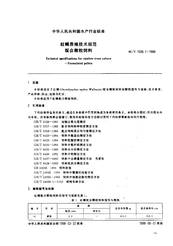 SC/T 1030.7-1999 虹鳟养殖技术规范.配合颗粒饲料