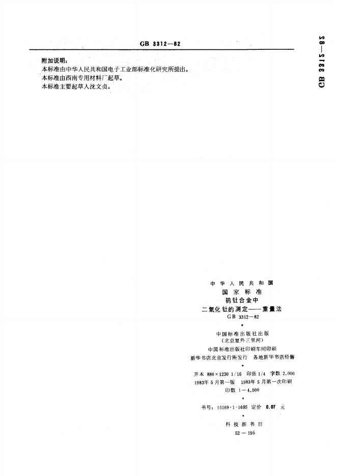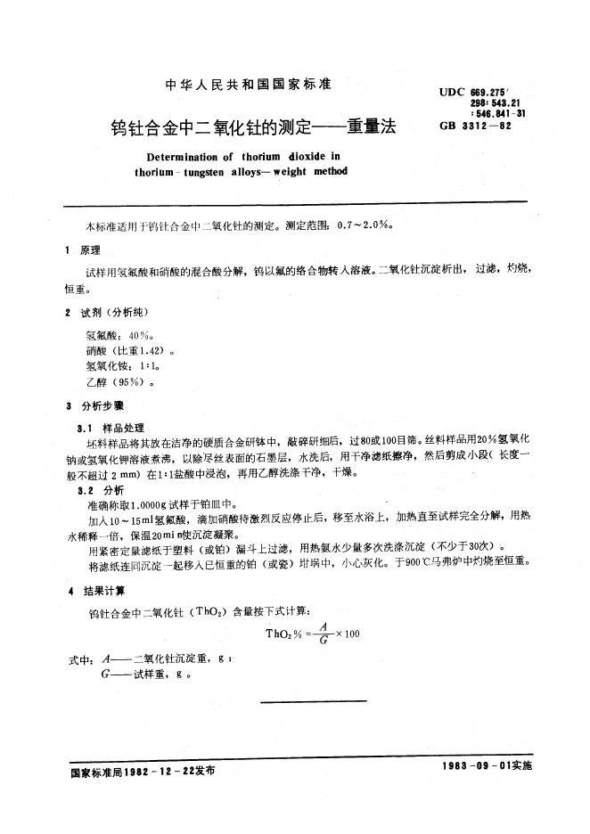 GB/T 3312-1982 钨钍合金中二氧化钍的测定 重量法