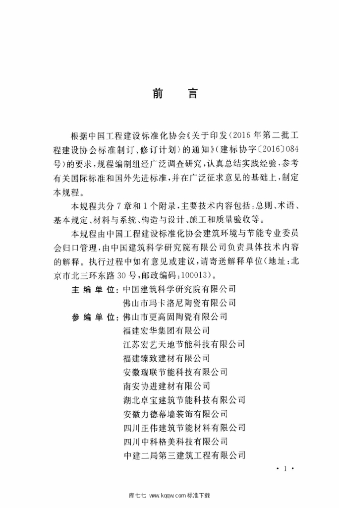 中国建筑科学研究院有限公司佛山市玛卡洛尼陶瓷有限公司 佛山市更高固陶瓷有限公司福建宏华集团有限公司江苏宏艺天地节能科技有限公司福建臻致建材有限公司安徽瑞联节能科技有限公司南安协进建材有限公司湖北卓宝建筑节能科技有限公司安徽力德幕墙装饰有限公司四川正伟建筑节能材料有限公司四川中科格美科技有限公司中建二局第三建筑工程有限公司 河南省新盛建筑节能装饰有限公司 湖南斯多孚节能工程有限公司 江苏坚雅节能建材有限公司 中亨新型材料科技有限公司 陕西建工伟业绿色环保建材有限公司 江苏薄翼瓷节能科技有限公司 佛山市德信致