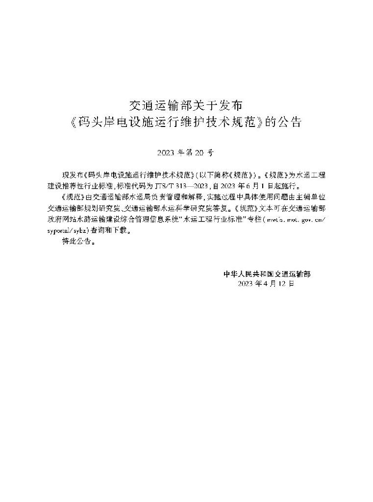 JTS/T 313-2023 码头岸电设施运行维护技术规范