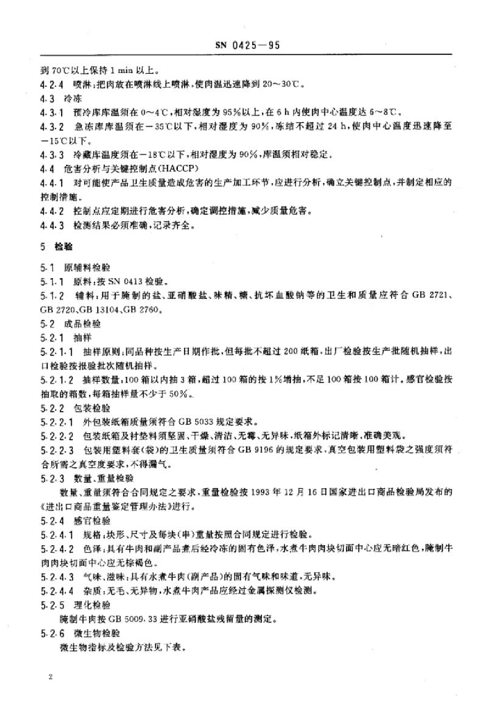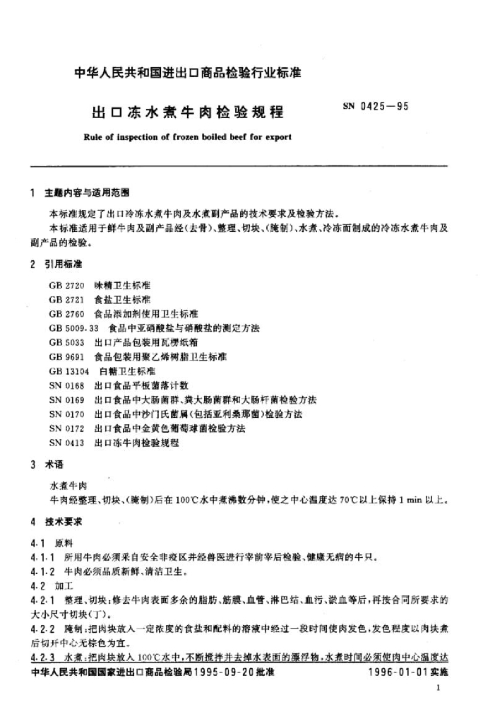 SN 0425-1995 出口冻水煮牛肉检验规程