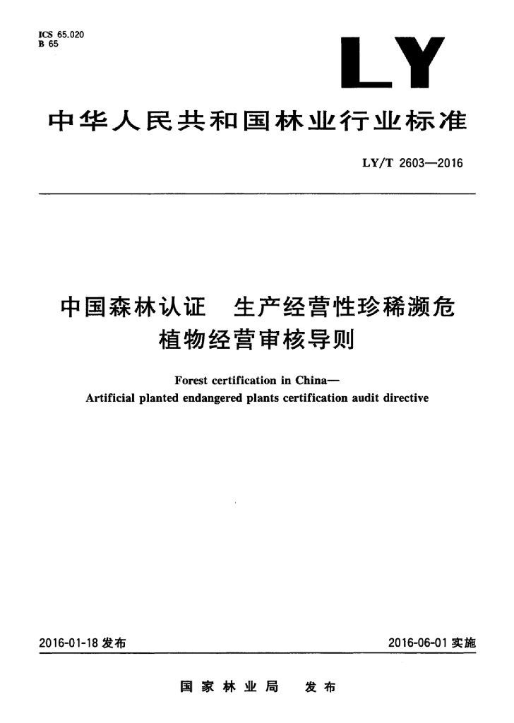 LY/T 2603-2016 中国森林认证 生产经营性珍稀濒危植物经营审核导则