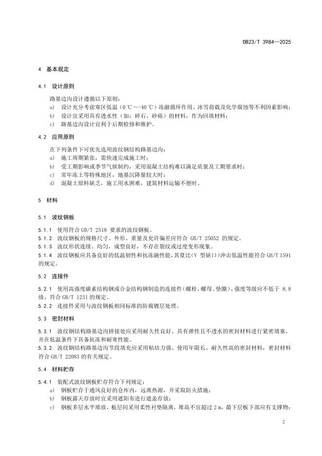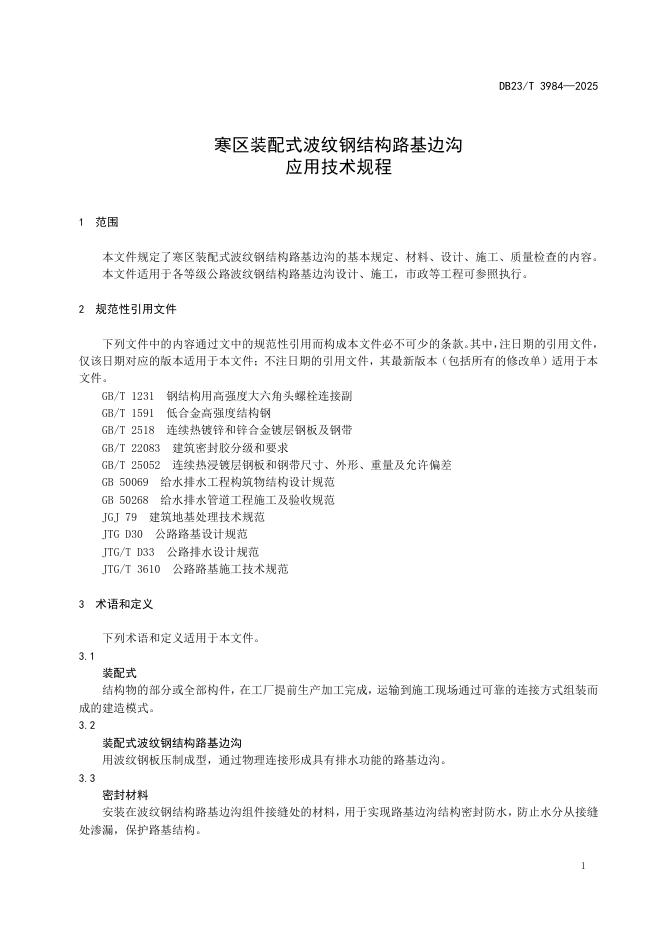 DB23/T 3984-2024 寒区装配式波纹钢结构路边沟应用技术规程
