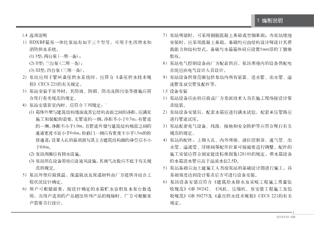 2015CPXY-S50 箱泵一体化消防给水设备图集