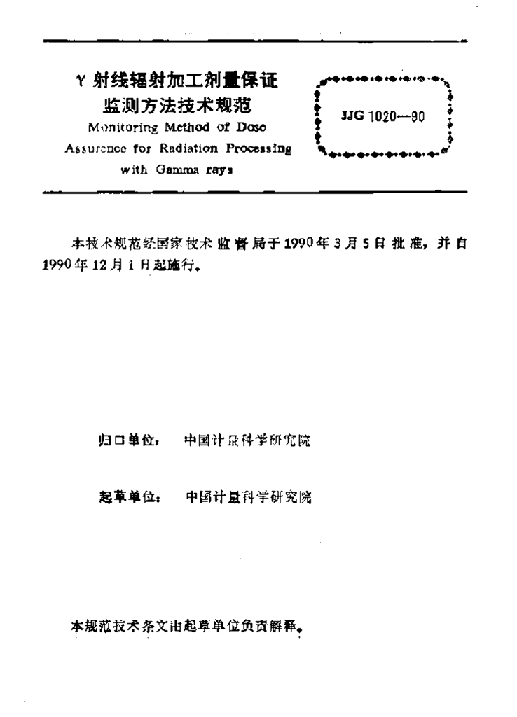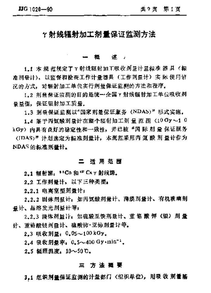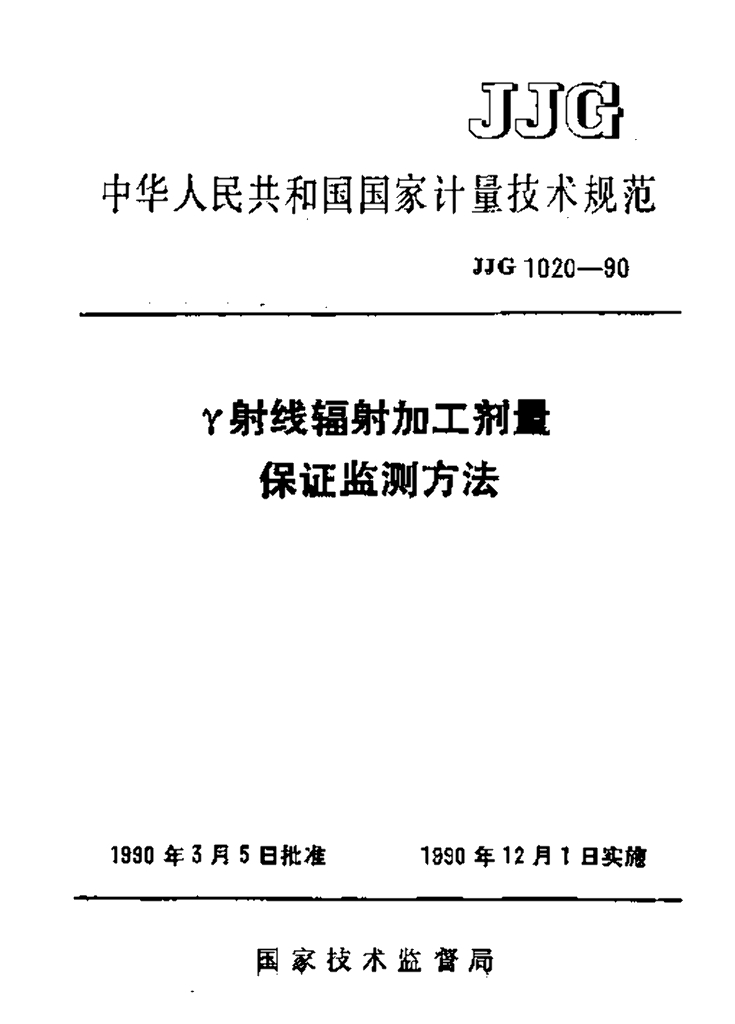 JJF 1020-1990 γ射线辐射加工剂量保证监测方法
