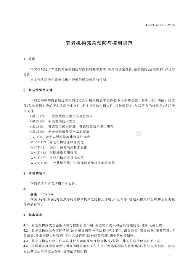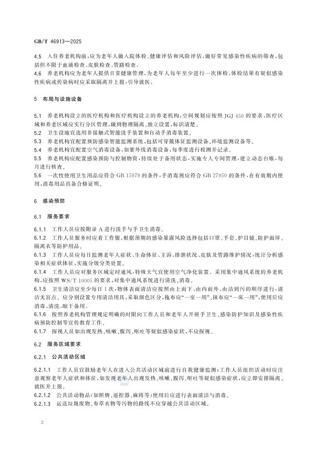 GB/T 46913-2025 养老机构感染预防与控制规范