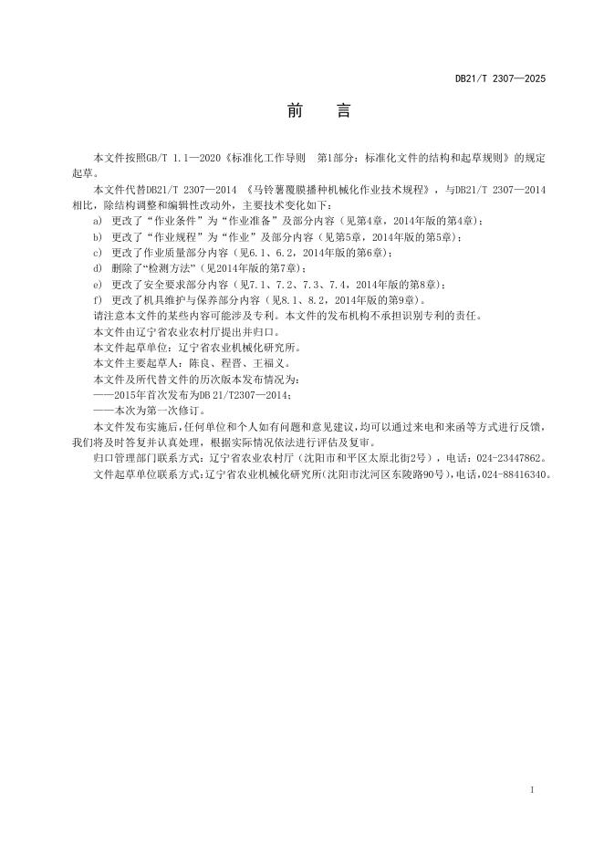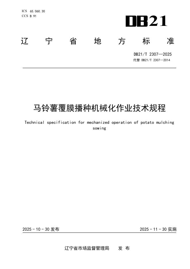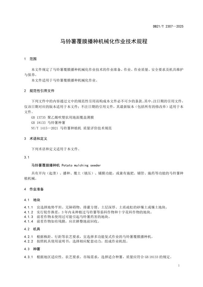 DB21/T 2307-2025 马铃薯覆膜播种机械化作业技术规程