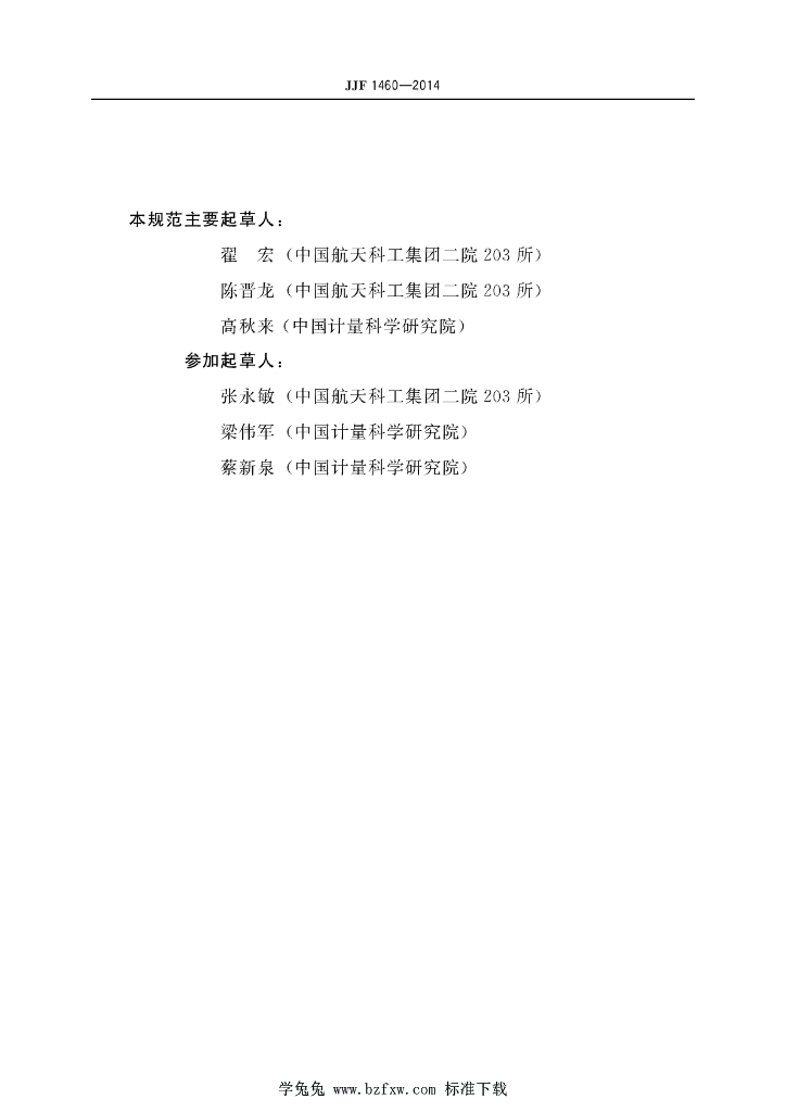 翟宏(中国航天科工集团二院203所)、陈晋龙(中国航天科工集团二院203所)、高秋来(中国计量科学研究院)、张永敏(中国航天科工集团二院203所)、梁伟军(中国计量科学研究院)、蔡新泉(中国计量科学研究院)