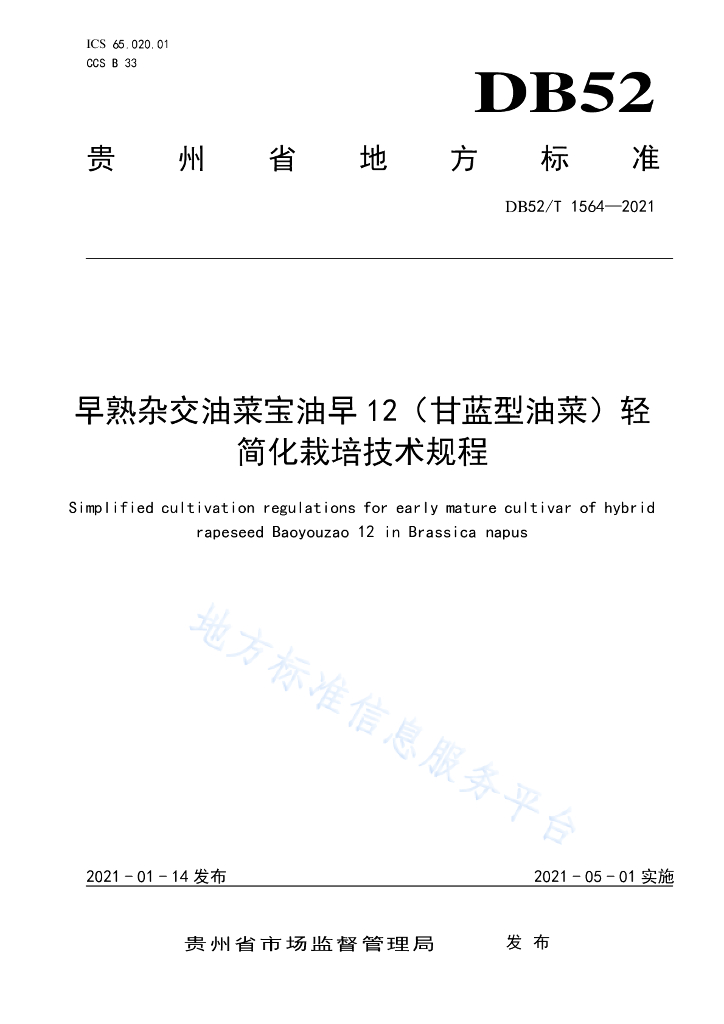 DB52/T 1564-2021 早熟杂交油菜宝油早12(甘蓝型油菜)轻简化栽培技术规程