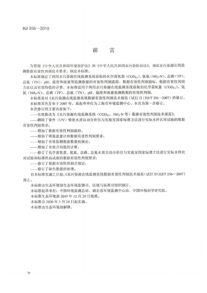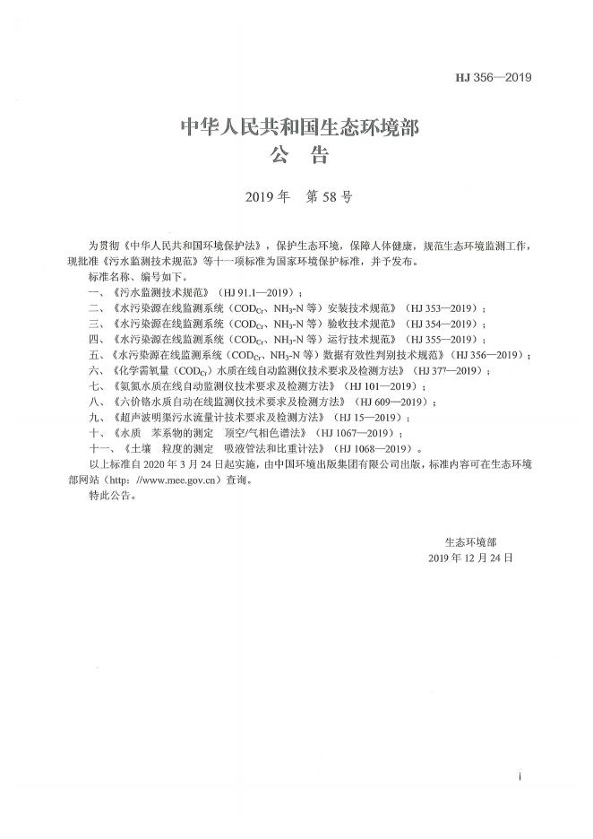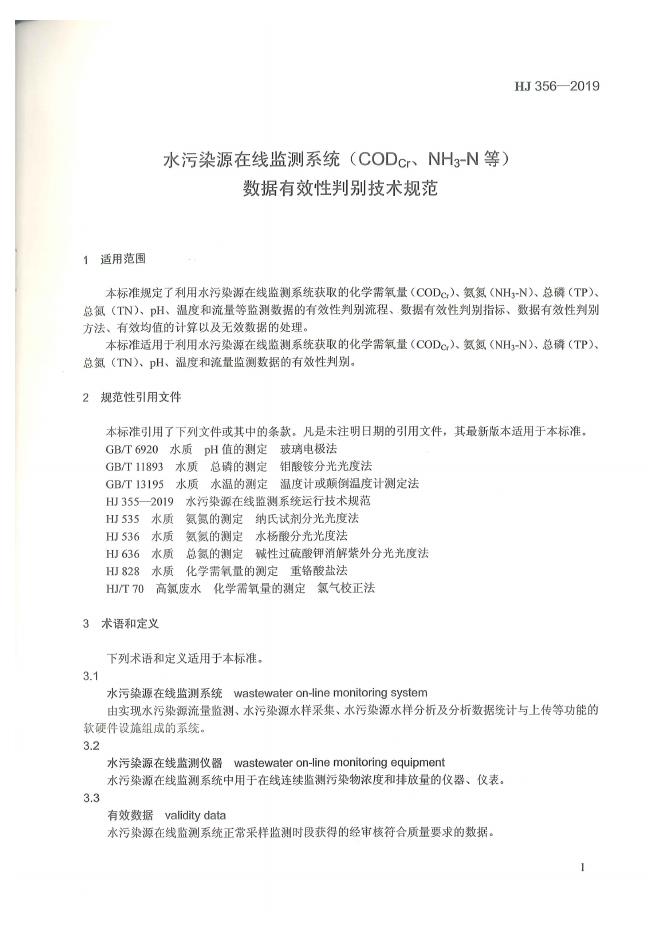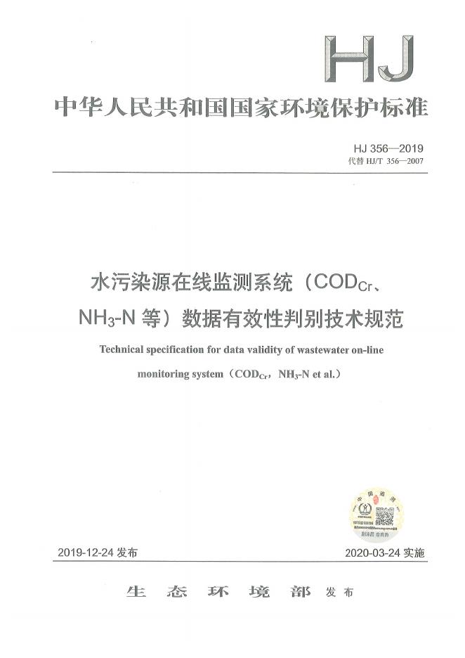 HJ 356-2019 水污染源在线监测系统(CODCr、NH3-N等)数据有效性判别技术规范