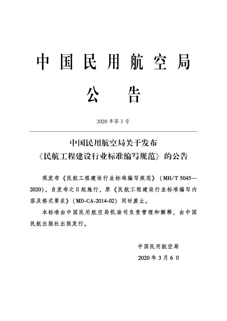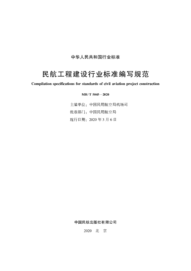 MH/T 5045-2020 民航工程建设行业标准编写规范