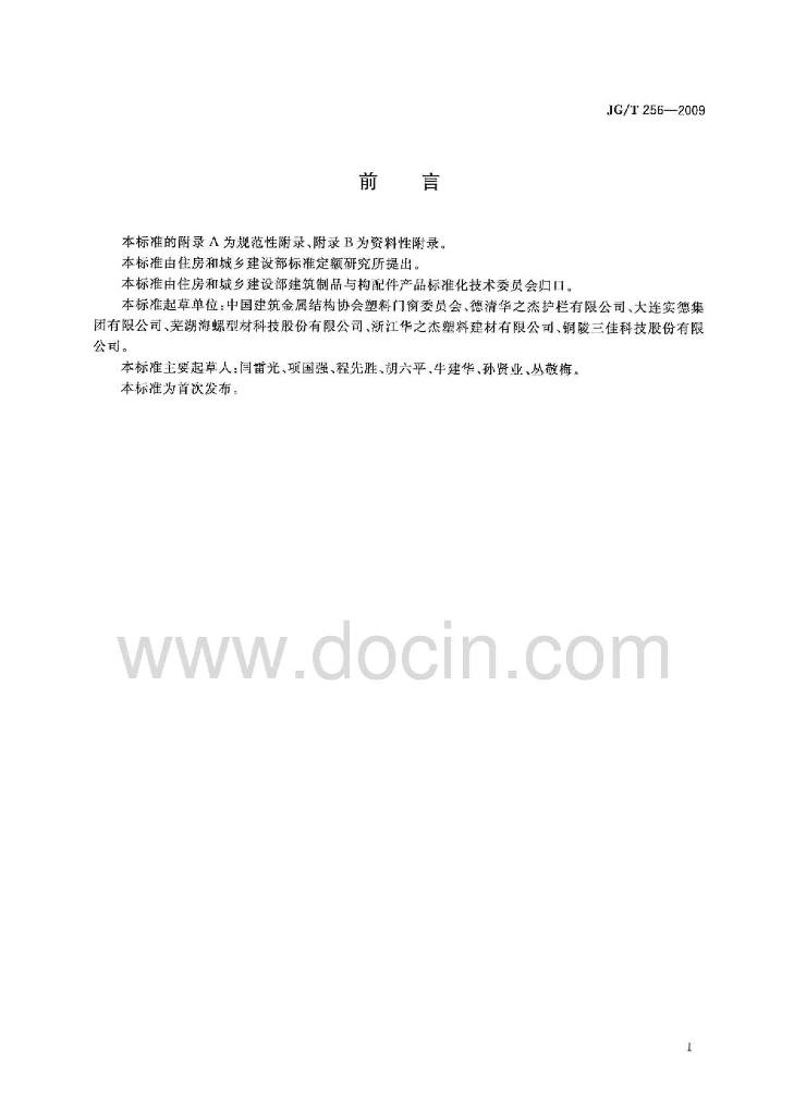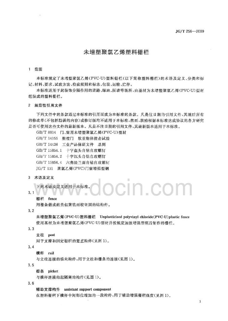 JG/T 256-2009 未增塑聚氯乙烯塑料栅栏