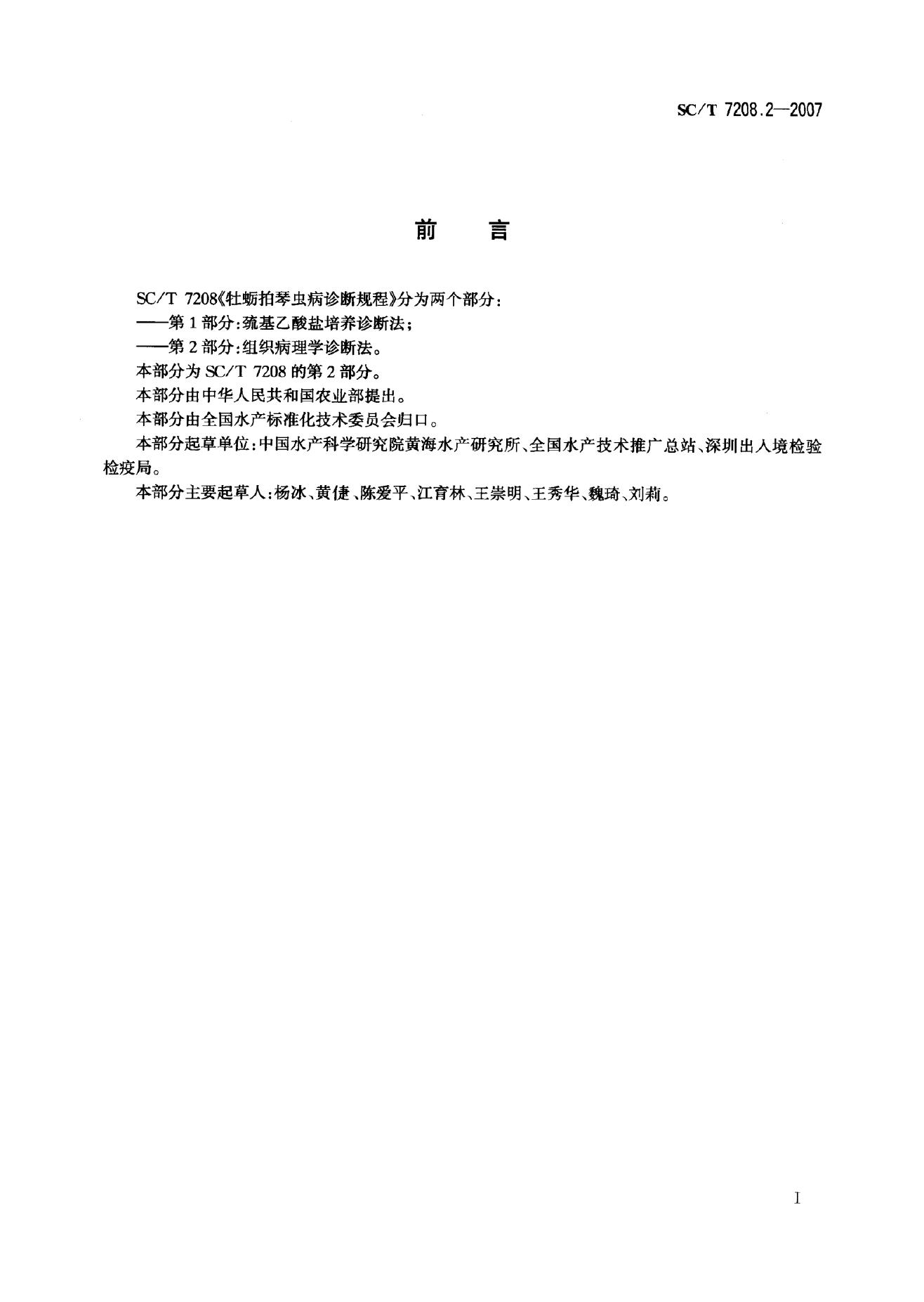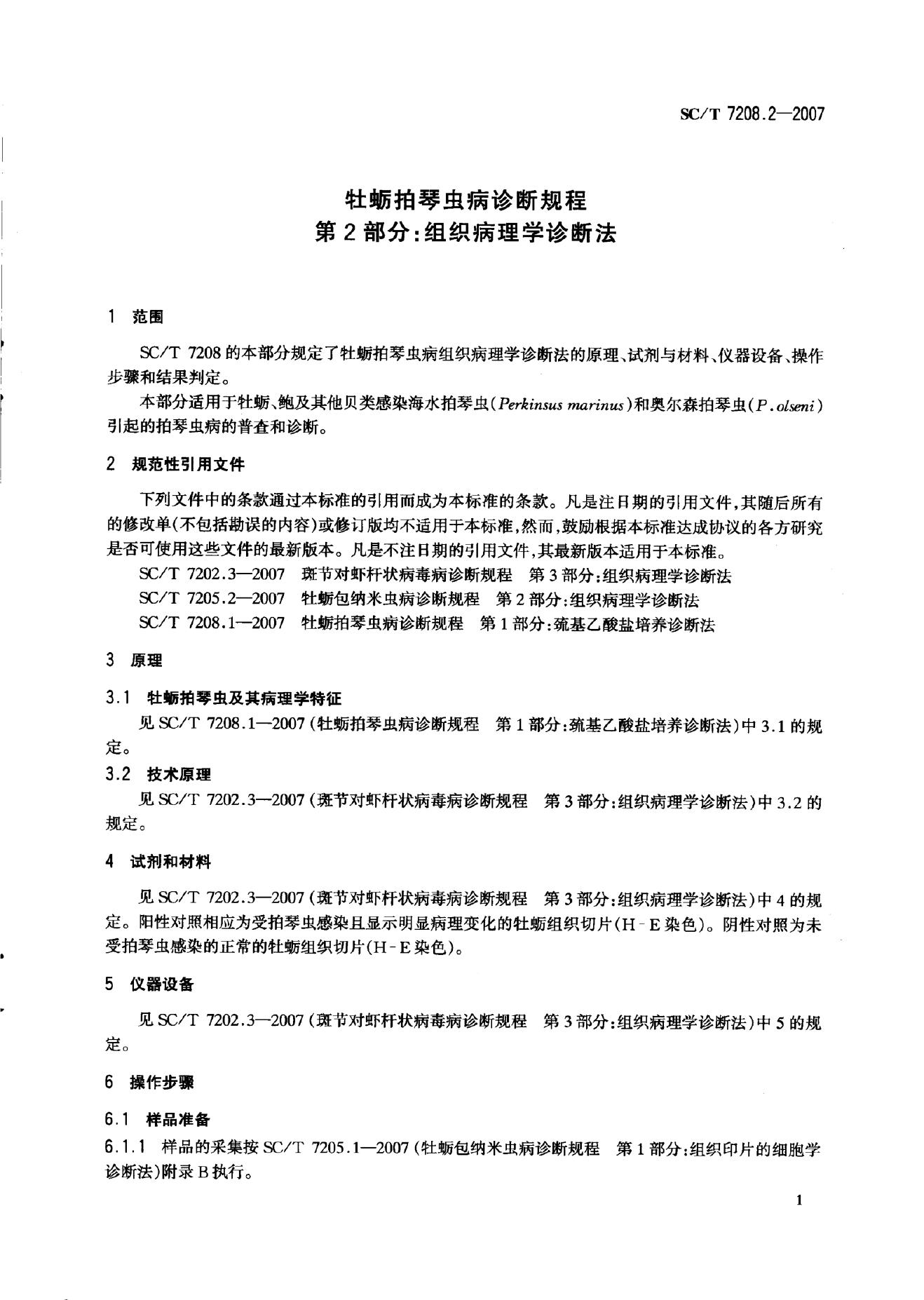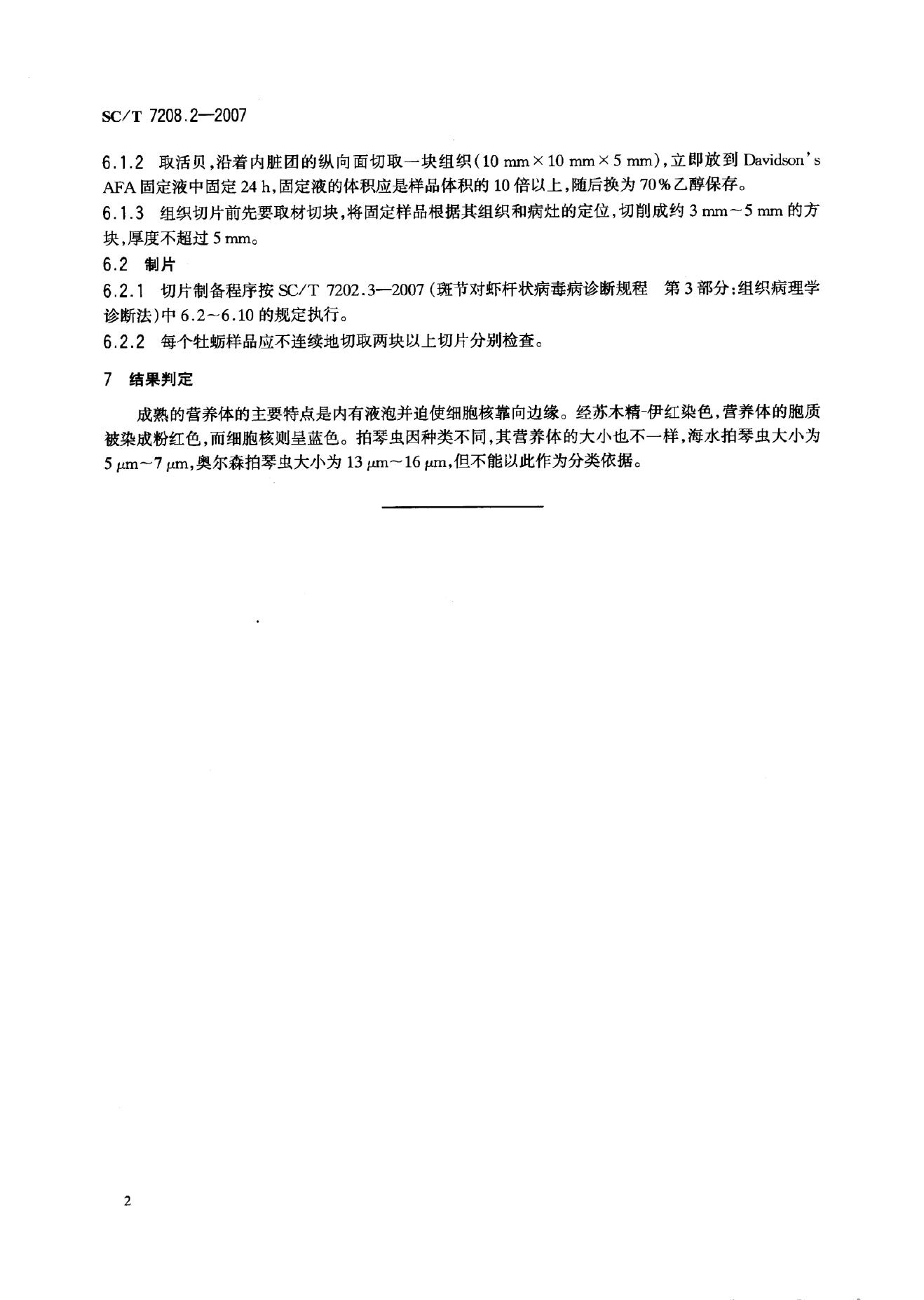 SC/T 7208.2-2007 牡蛎拍琴虫病诊断规程 第2部分:组织病理学诊断法