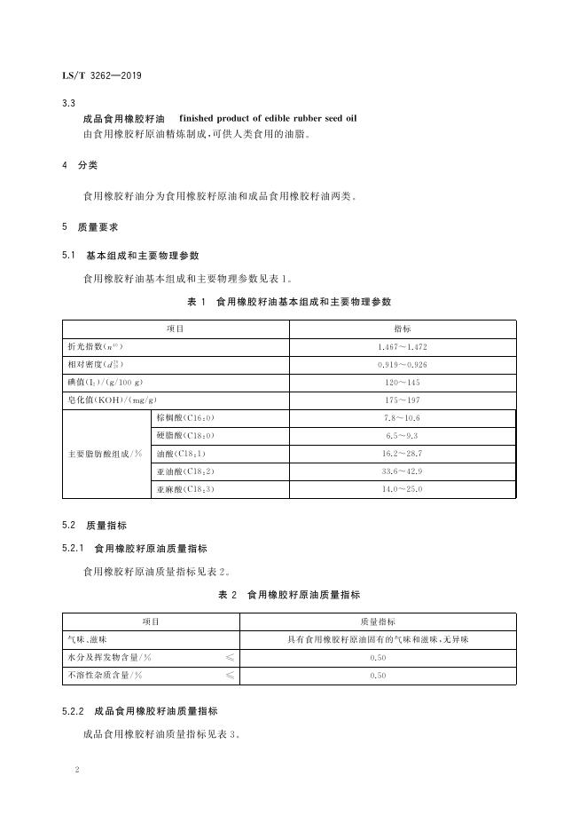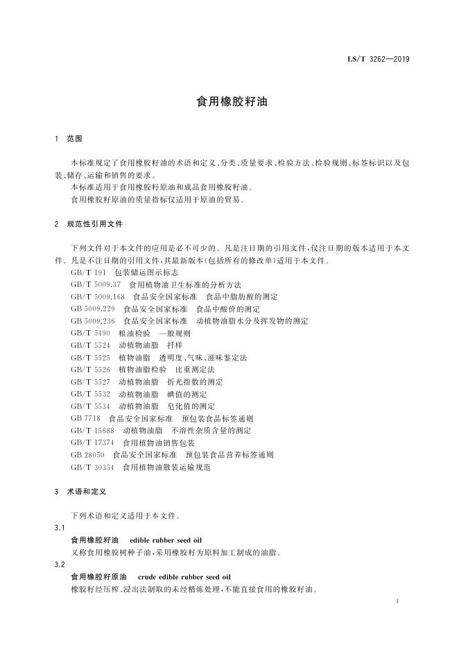 LS/T 3262-2019 食用橡胶籽油