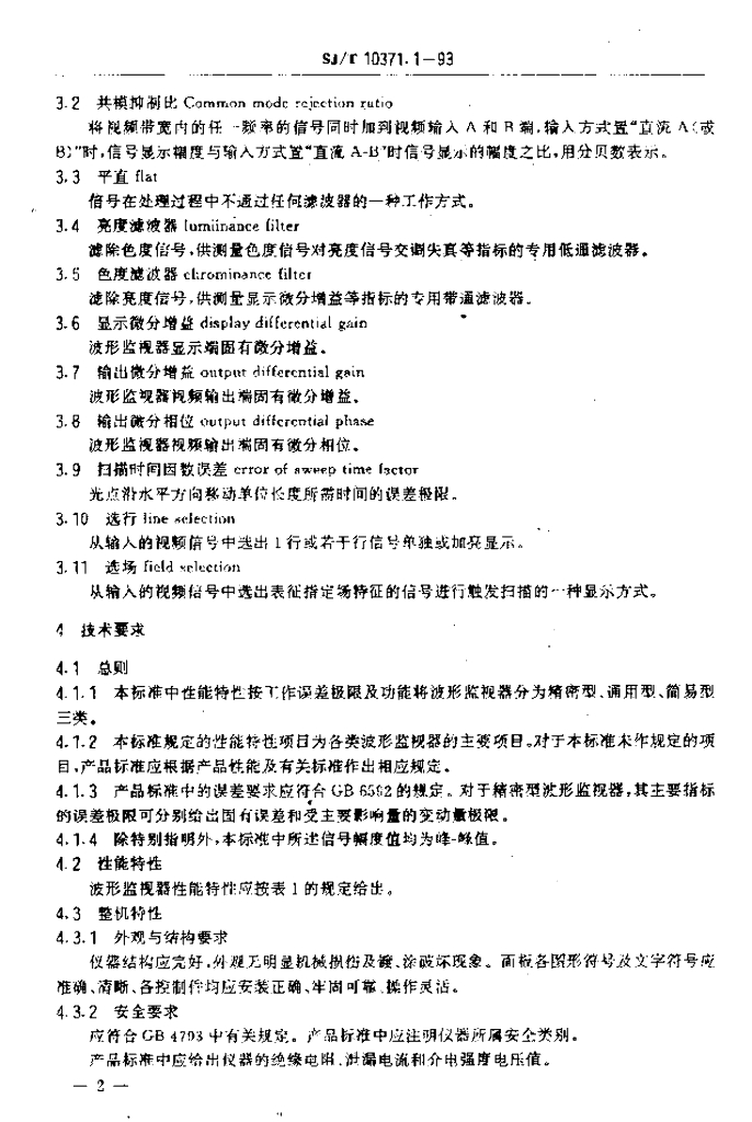 SJ/T 10371.1-1993 电视波形监视器通用技术条件