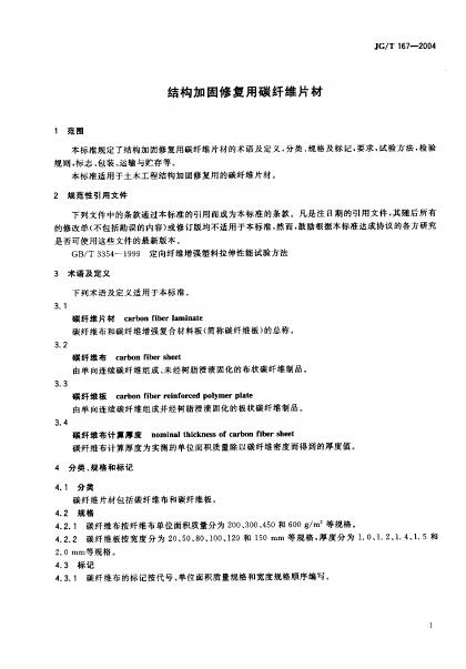 JG/T 167-2004 结构加固修复用碳纤维片材