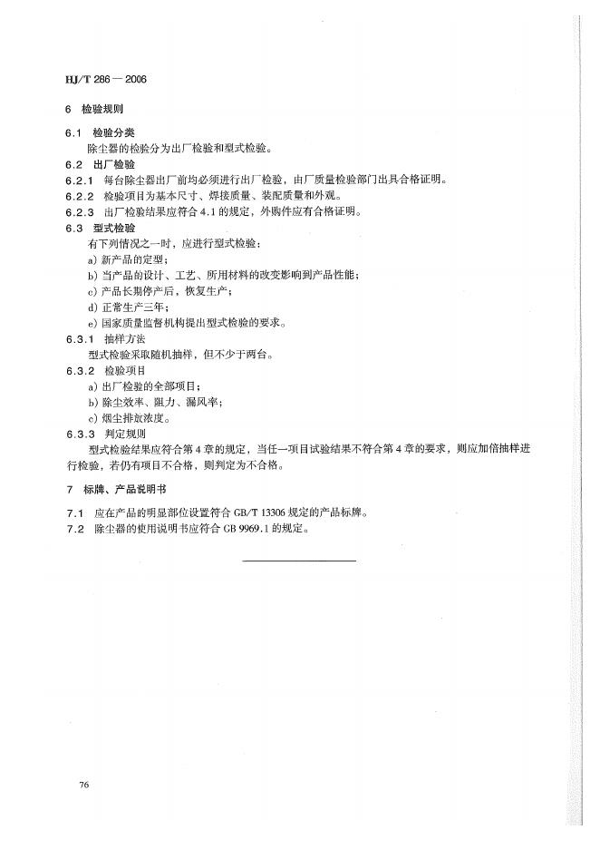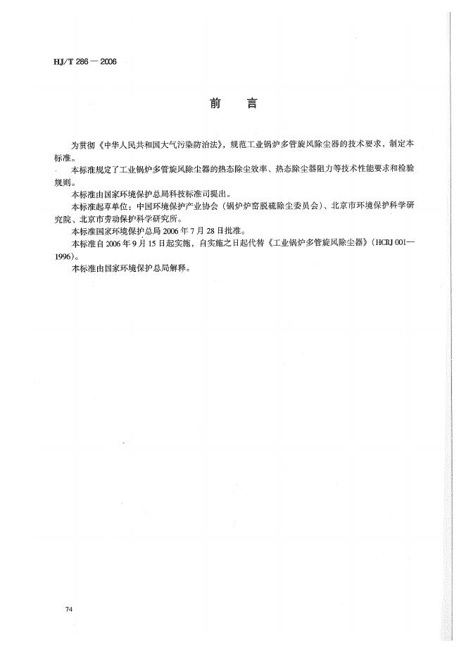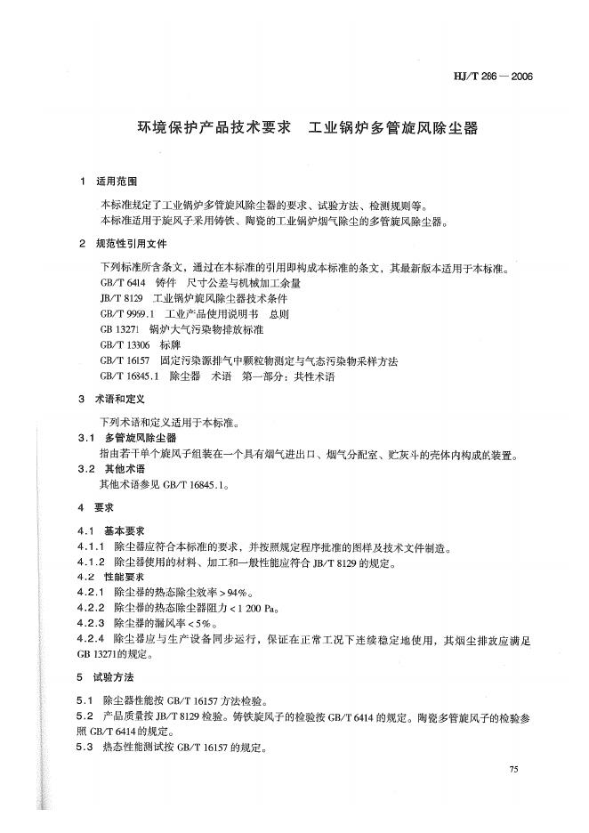 HJ/T 286-2006 环境保护产品技术要求 工业锅炉多管旋风除尘器