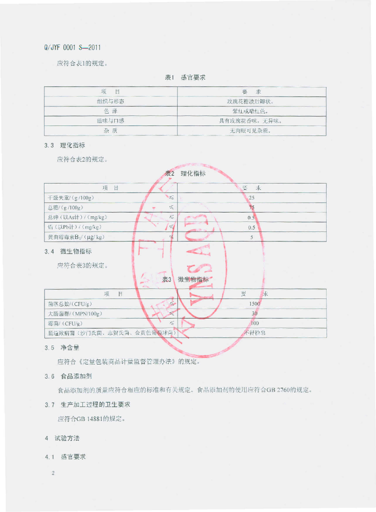Q/JYF 0001S-2011 玫瑰花食品馅料