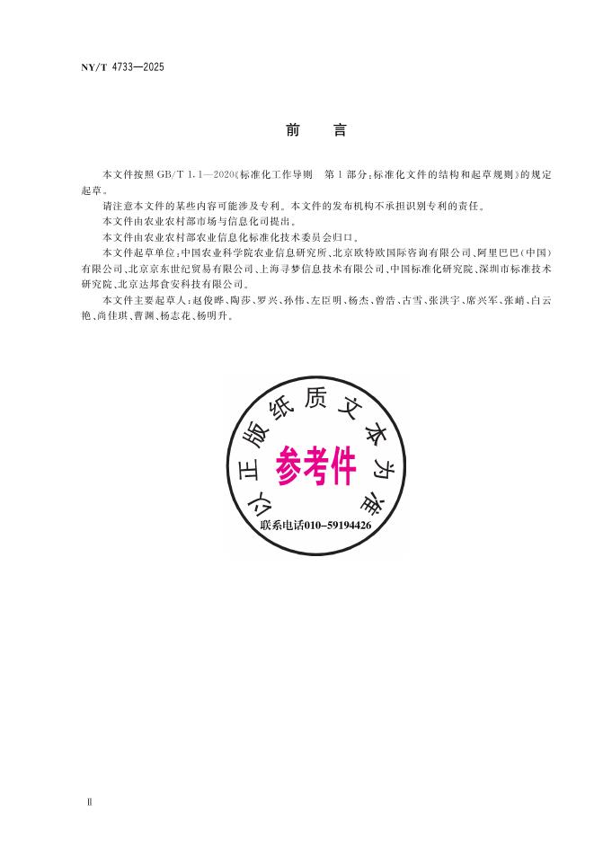 中国农业科学院农业信息研究所、北京欧特欧国际咨询有限公司、阿里巴巴(中国)有限公司、北京京东世纪贸易有限公司、上海寻梦信息技术有限公司、中国标准化研究院、深圳市标准技术研究院、北京达邦食安科技有限公司。