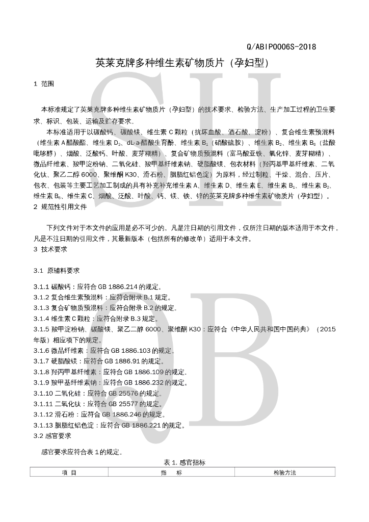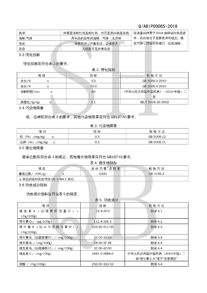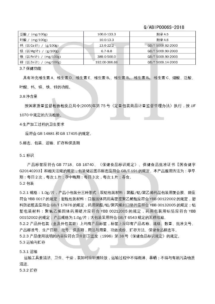 Q/ABIP 0006S-2018 英莱克牌多种维生素矿物质片(孕妇型)