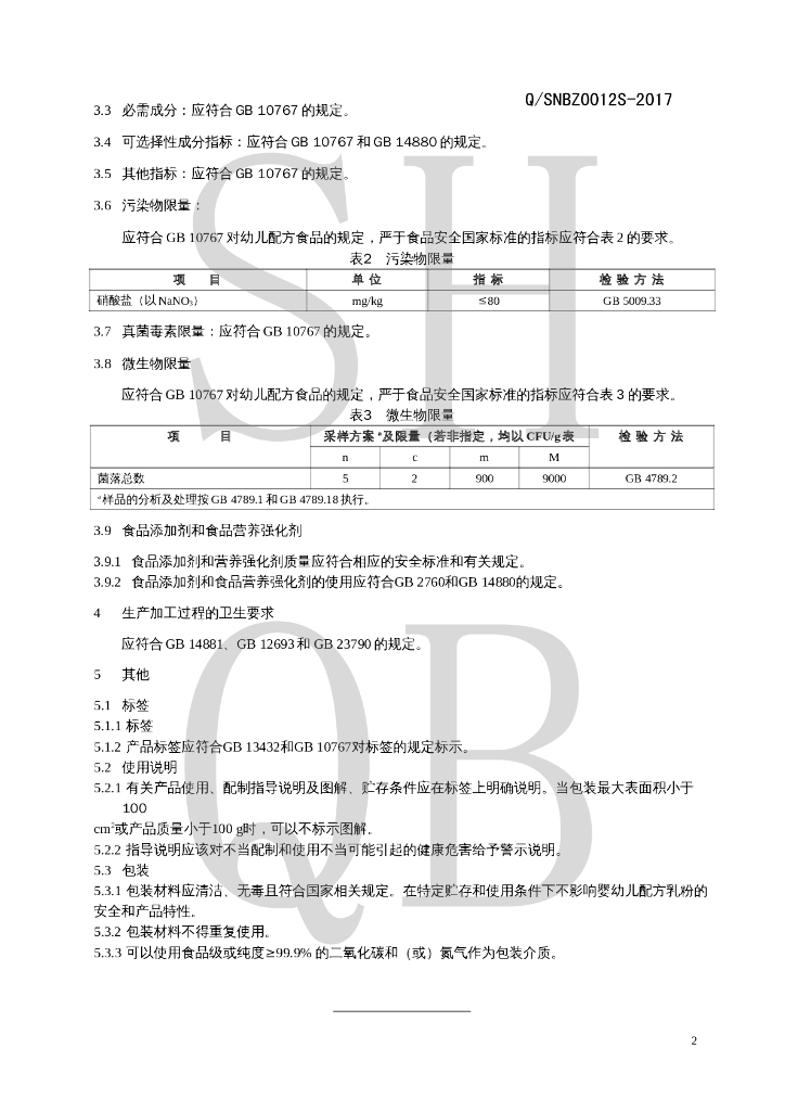 Q/SNBZ 0012S-2017 幼儿配方奶粉(Ⅳ型)