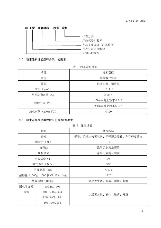 Q/YDFM 01-2022 YD-Ⅰ型环氧树脂 粉末涂料