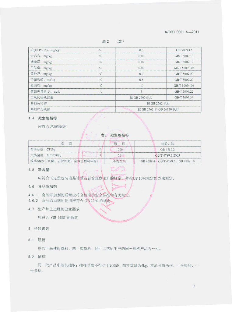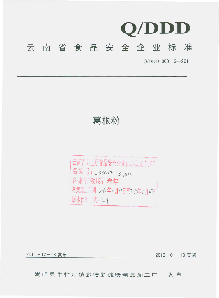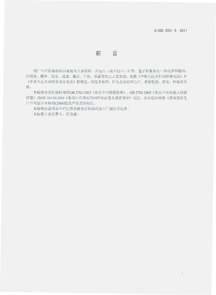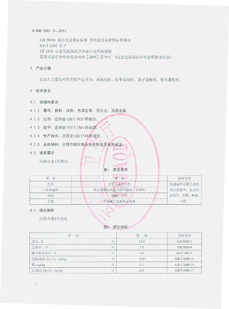 Q/DDD 0001S-2011 葛根粉