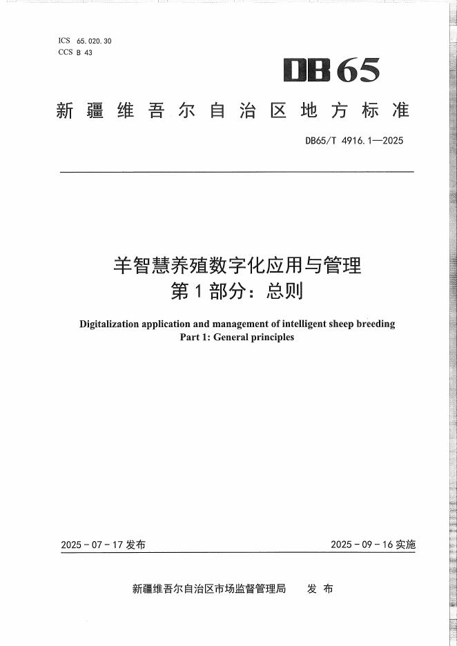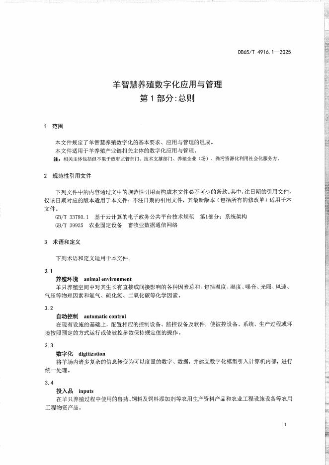 DB65/T 4916.1-2025 羊智慧养殖数字化应用与管理第1部分:总则