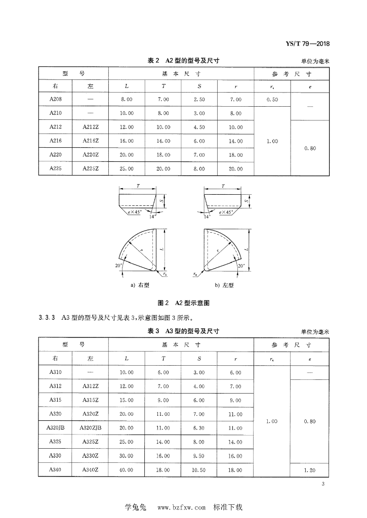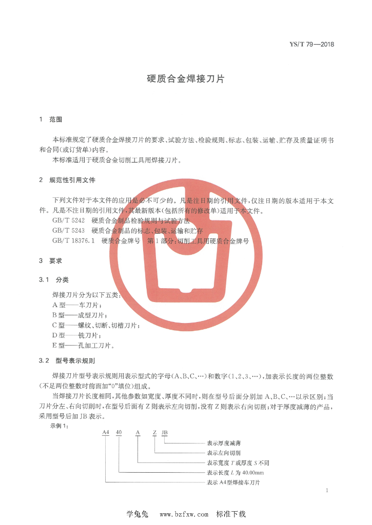 YS/T 79-2018 硬质合金焊接刀片