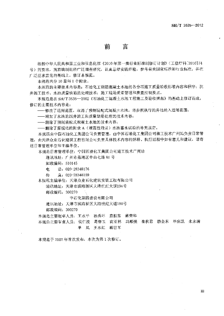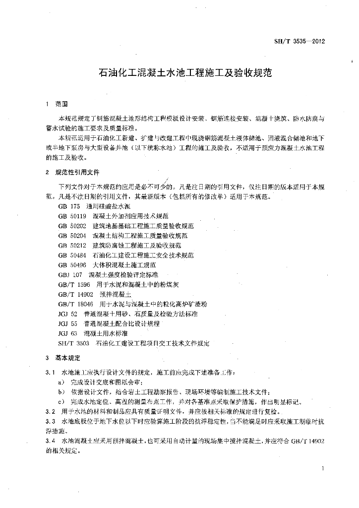 SH/T 3535-2012 石油化工混凝土水池工程施工及验收规范