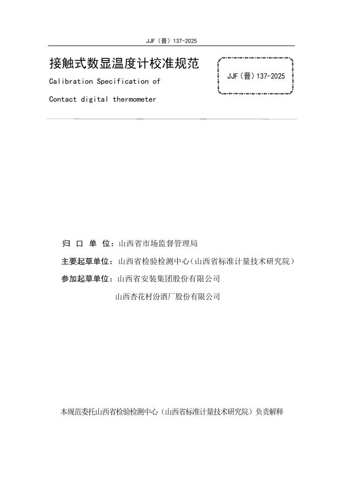 JJF(晋)137-2025 接触式数显温度计校准规范