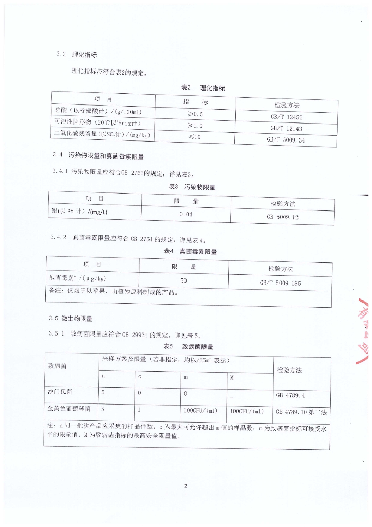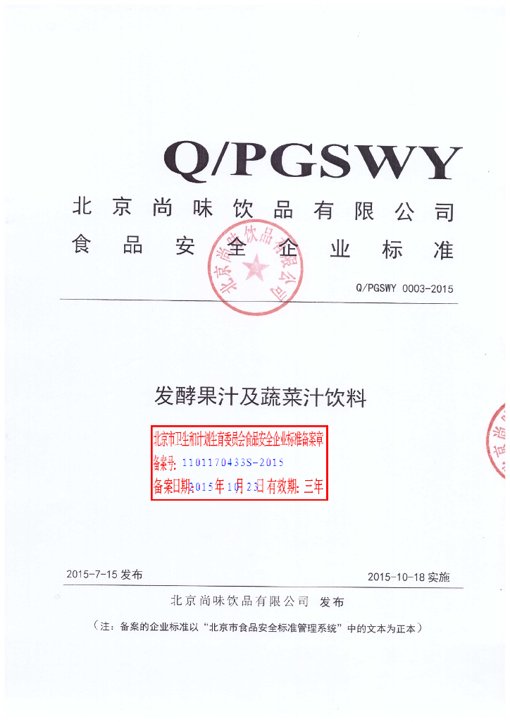 Q/PGSWY 0003-2015 北京尚味饮品有限公司 发酵果汁及蔬菜汁饮料