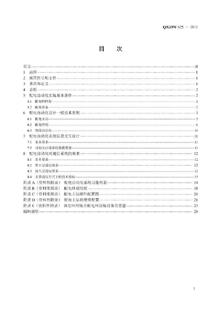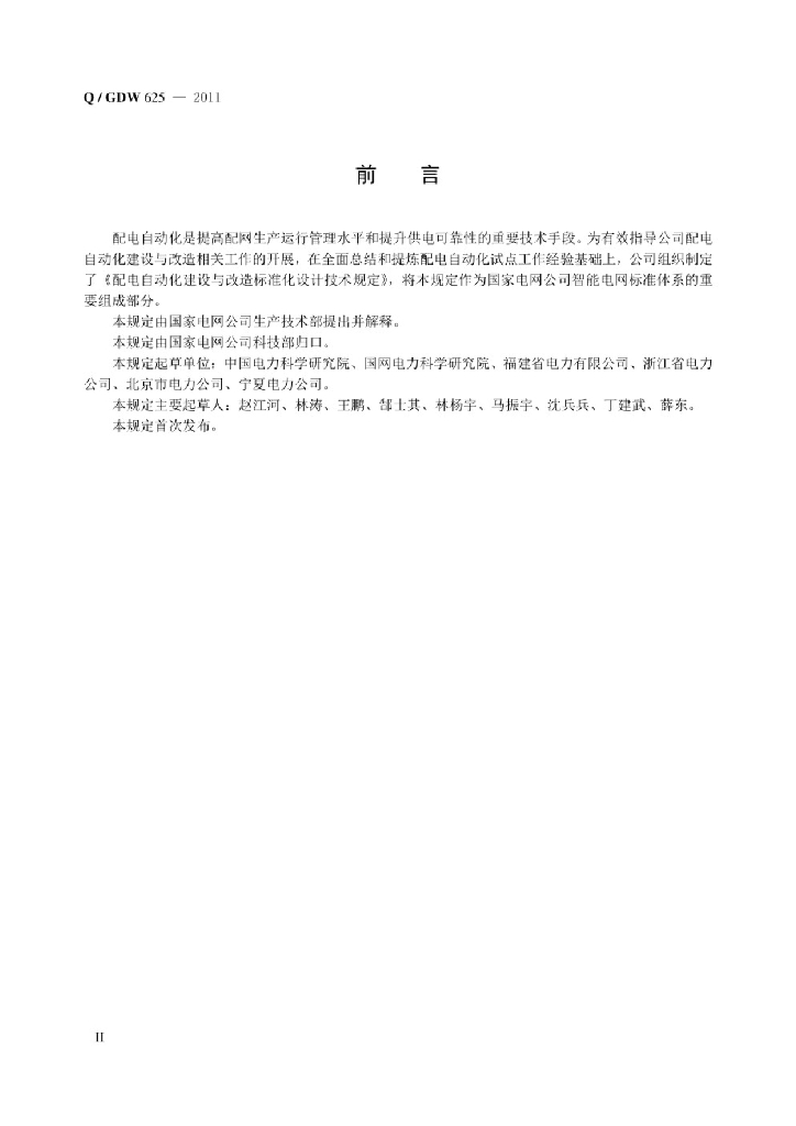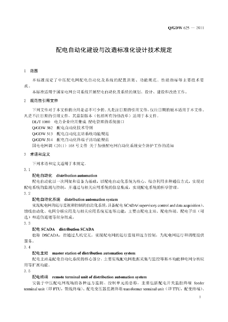 Q/GDW 625-2011 配电自动化建设与改造标准化设计技术规定