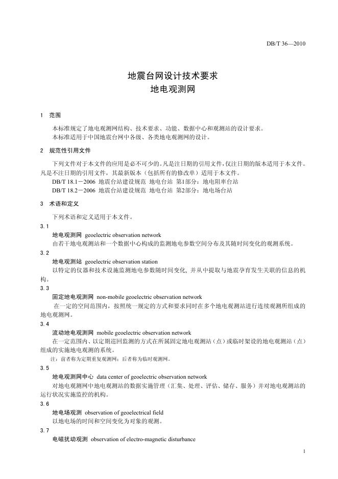 DB/T 36-2010 地震台网设计技术要求 地电观测网