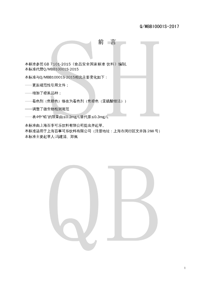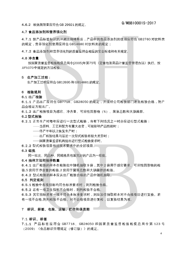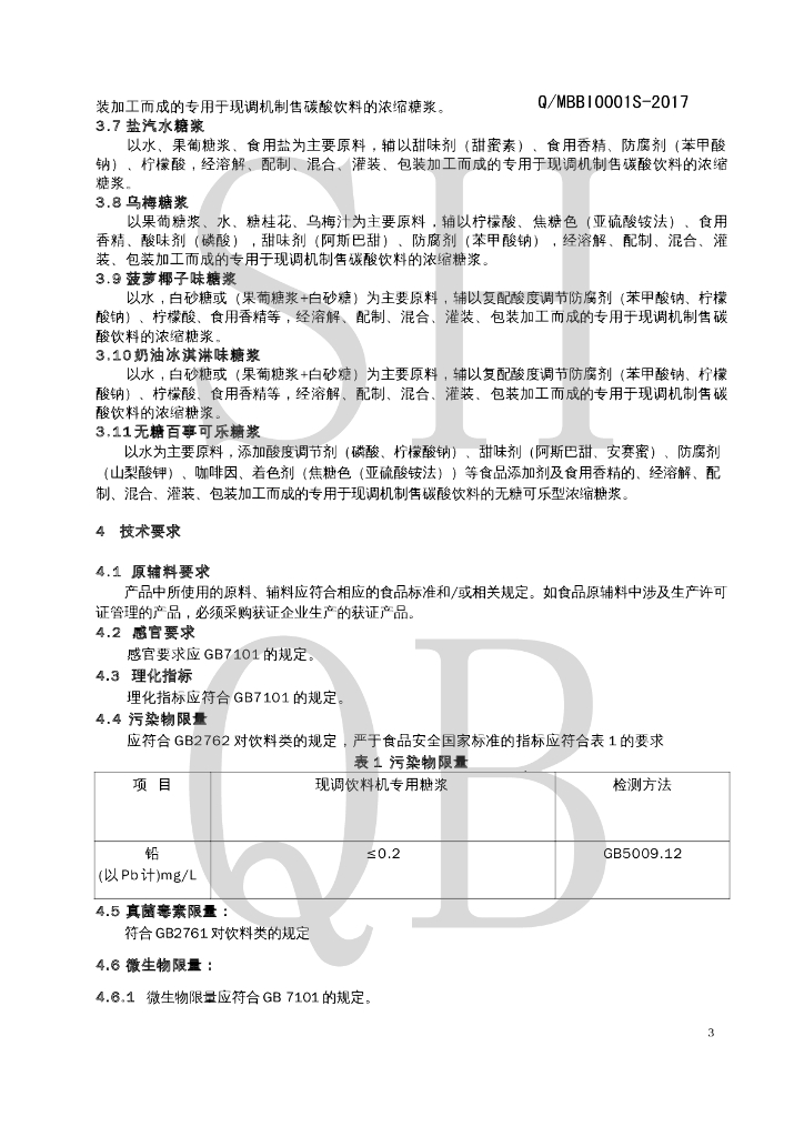 Q/MBBI 0001S-2017 现调饮料机专用糖浆