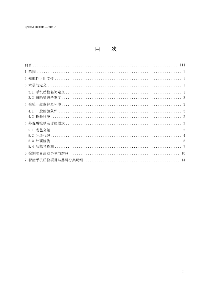 Q/DXJDT 0001-2017 二手手机质量检测与评级方法
