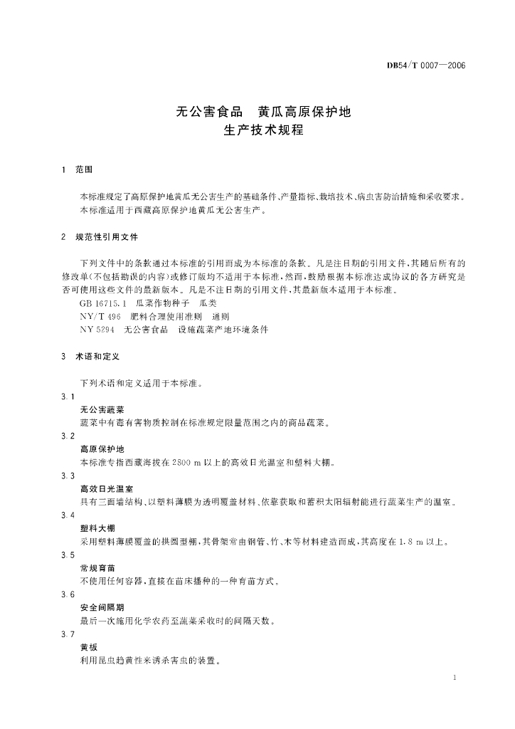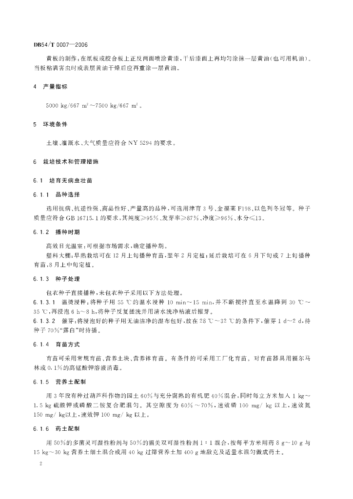 DB54/T 0007-2006 无公害食品 黄瓜高原保护地生产技术规程