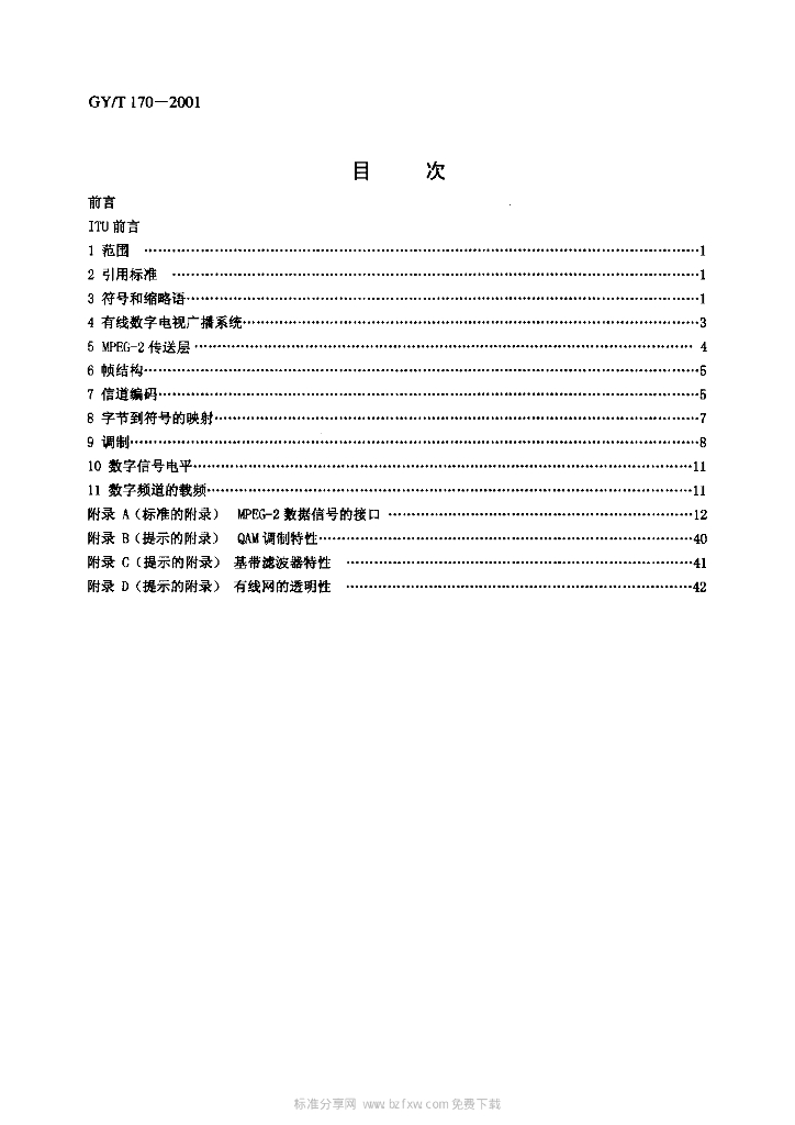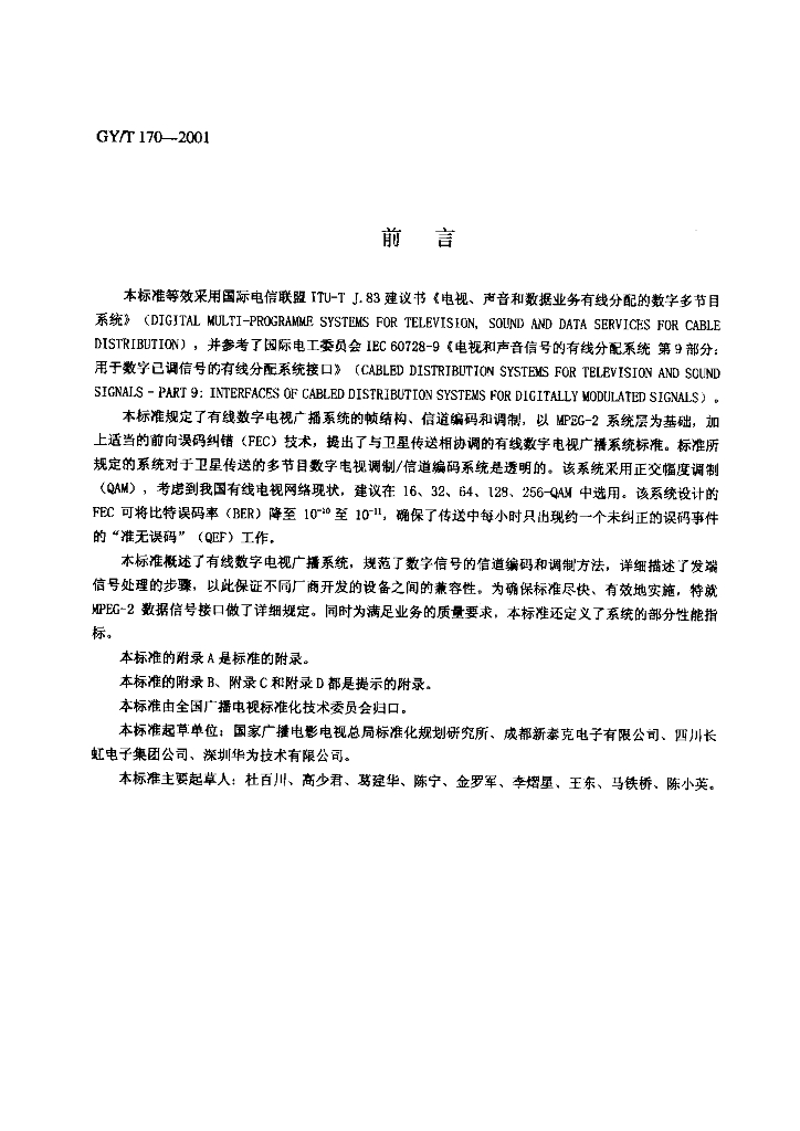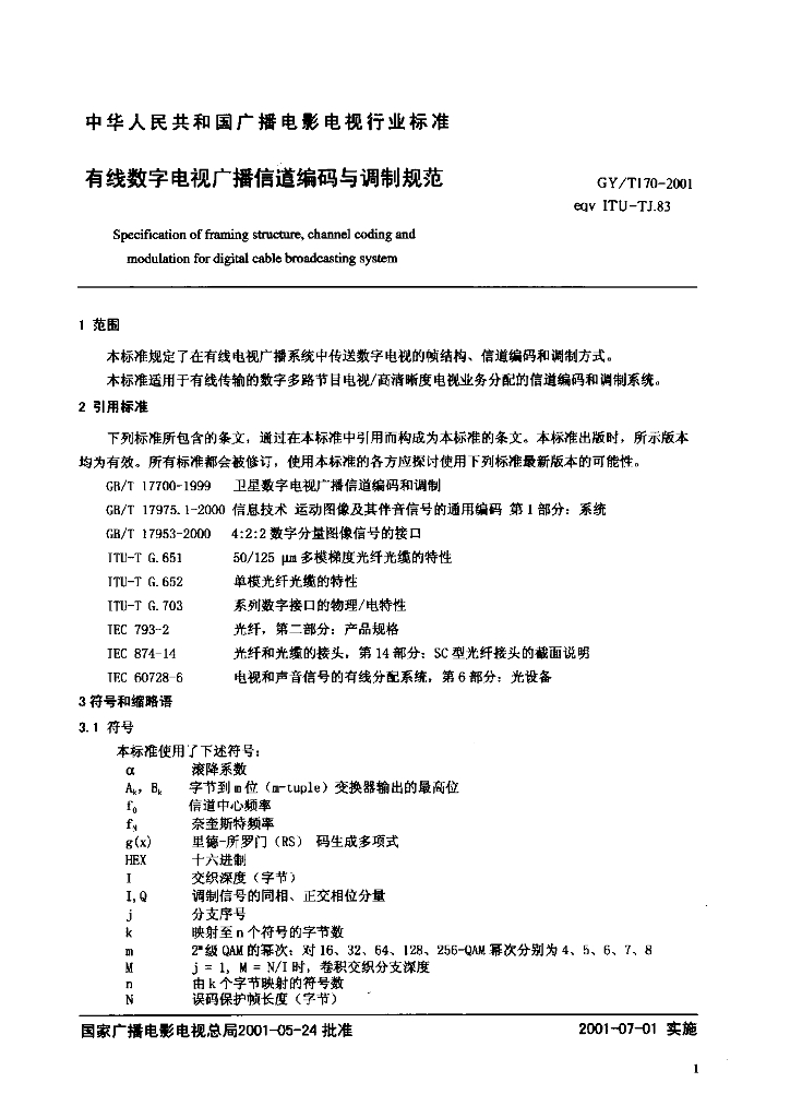 GY/T 170-2001 有线数字电视广播信道编码与调制规范